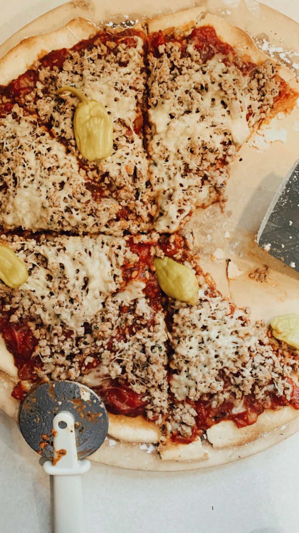 Optional toppings: Jarlsberg cheese and pepperoncini peppers.